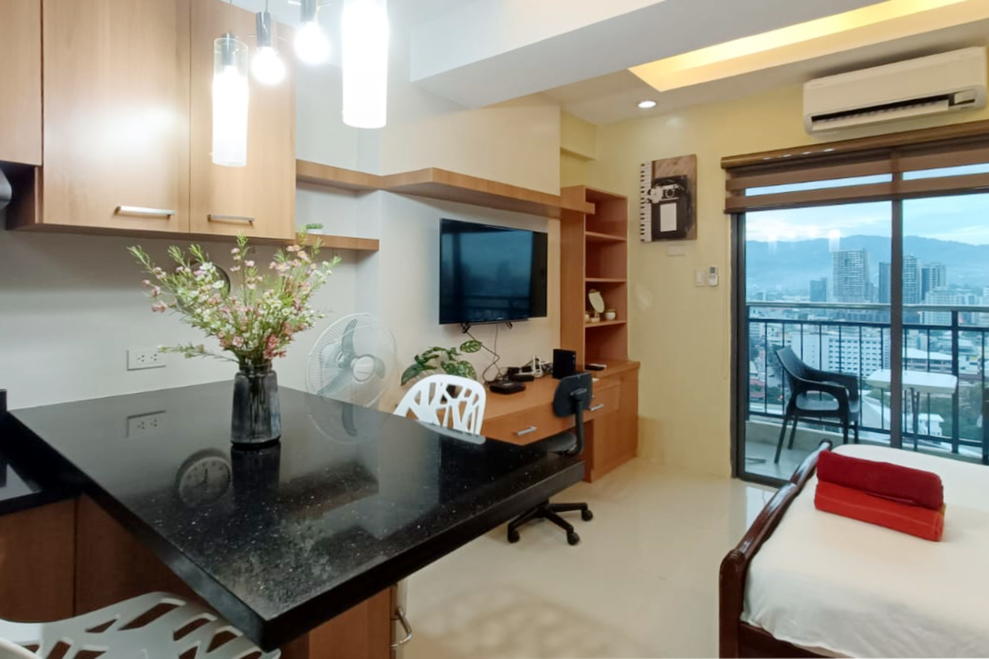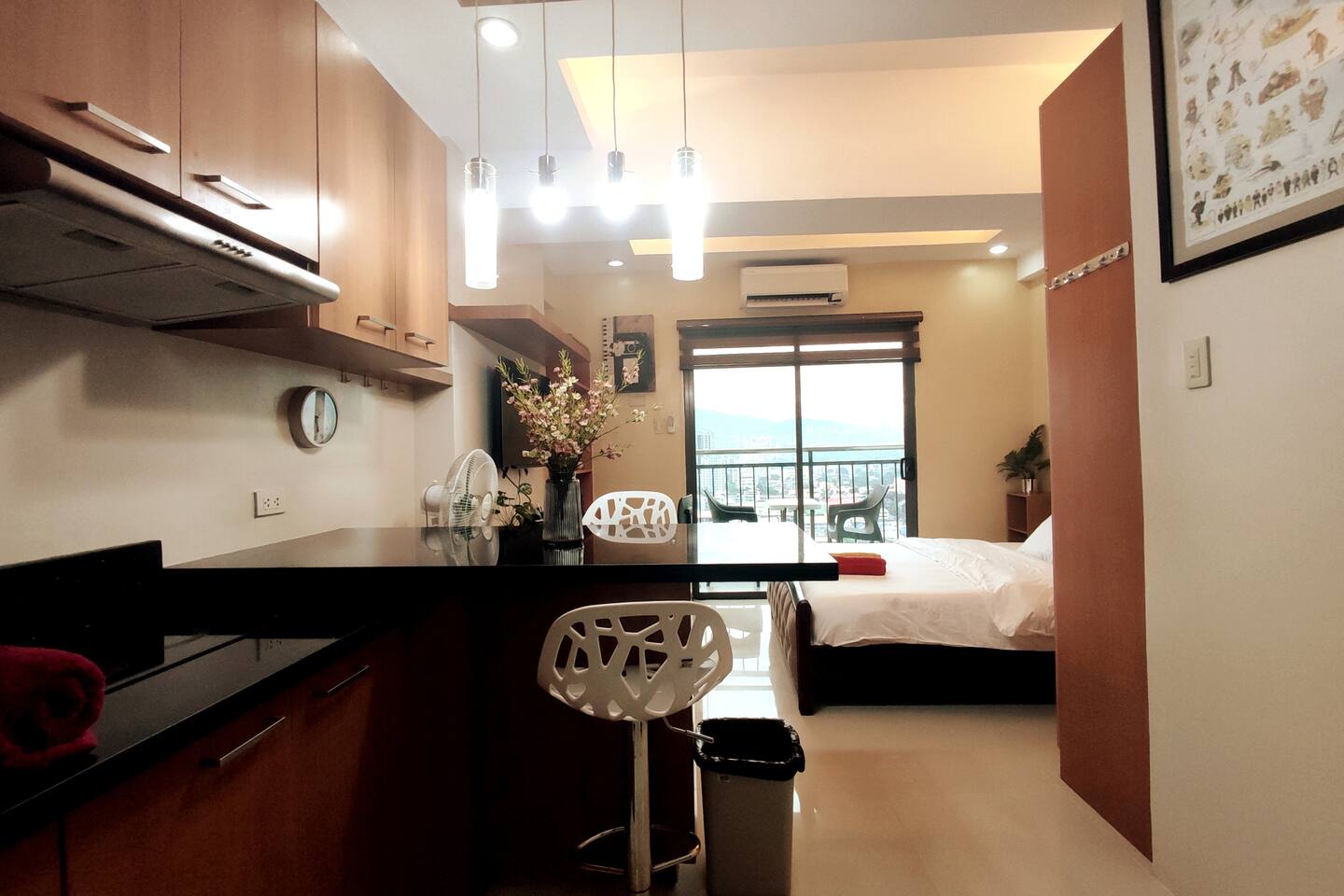 * Enjoy the breathtaking view of Cebu City and the mountains behind with a drink on the balcony in this stylish and modern studio in City Suites Ramos! * Work at the dedicated workplace... or at the bar table :) * Save time and money with free 5 gallons / 20 liters of drinking water in the water dispenser