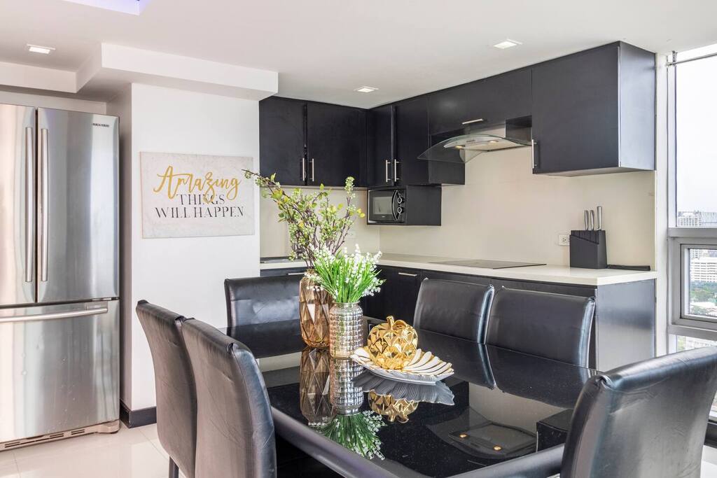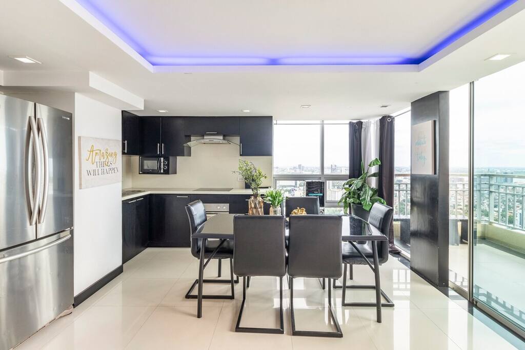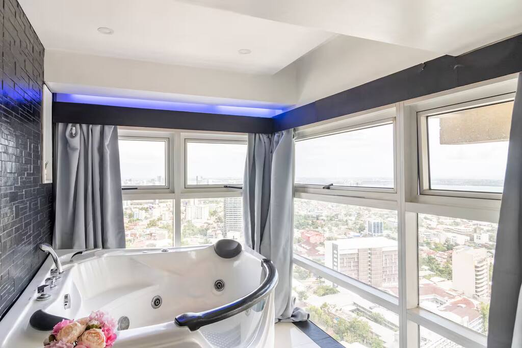This spectacular penthouse has jacuzzi, terrace, 3 bedrooms w/ ensuite bathrooms and big living room. You'll enjoy the breathtaking panorama view over the city and the sea! Situated in Ultima Residences Tower 3, you can walk to Fuente Osmena with shopping, restos and night life! * Jacuzzi * Terrace * Designer sofas * Kitchen * Free drinking water (19L) * Fixed internet * UHD 4k TV 50" Netflix
